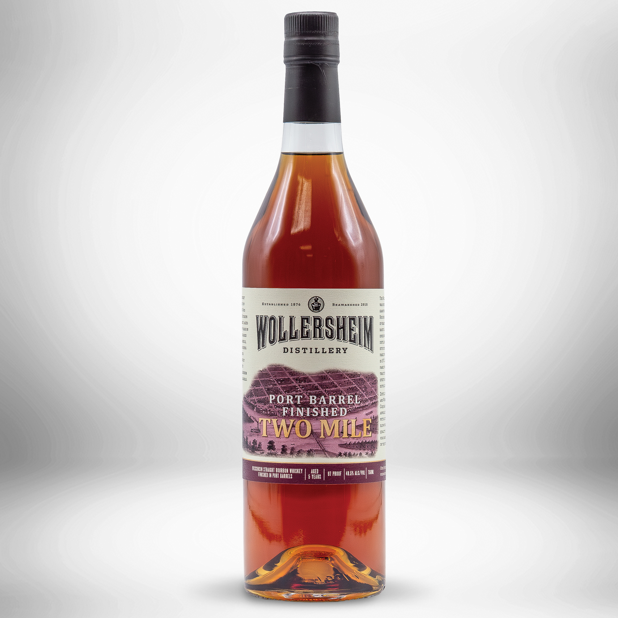 Story: Late every fall as the winery empties Port barrels, they are then filled with Two Mile Bourbon. This “finishing” process imparts the sweet and fruity characteristics of the Port into the mature Bourbon adding unique complexity.
