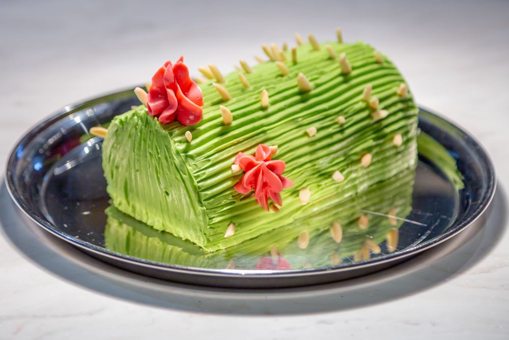 Celebrate your holidays with a delicious French Yule Log Cake! We’re bringing in the warmth of the season with this year’s Christmas Cactus Yule Log Cake. This delightful Christmas Cactus features a delicious Bistro-made jelly roll cake filled with Raspberry Mascarpone and decorated with Pistachio-flavored buttercream frosting. Each cake serves 8-10 slices.